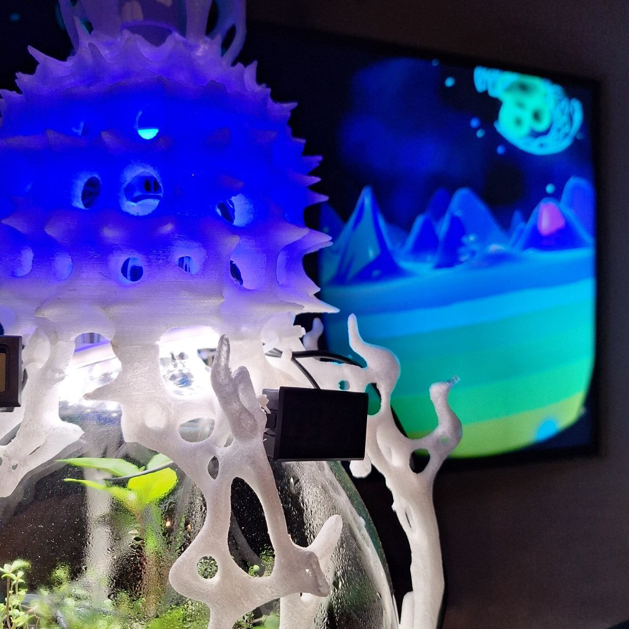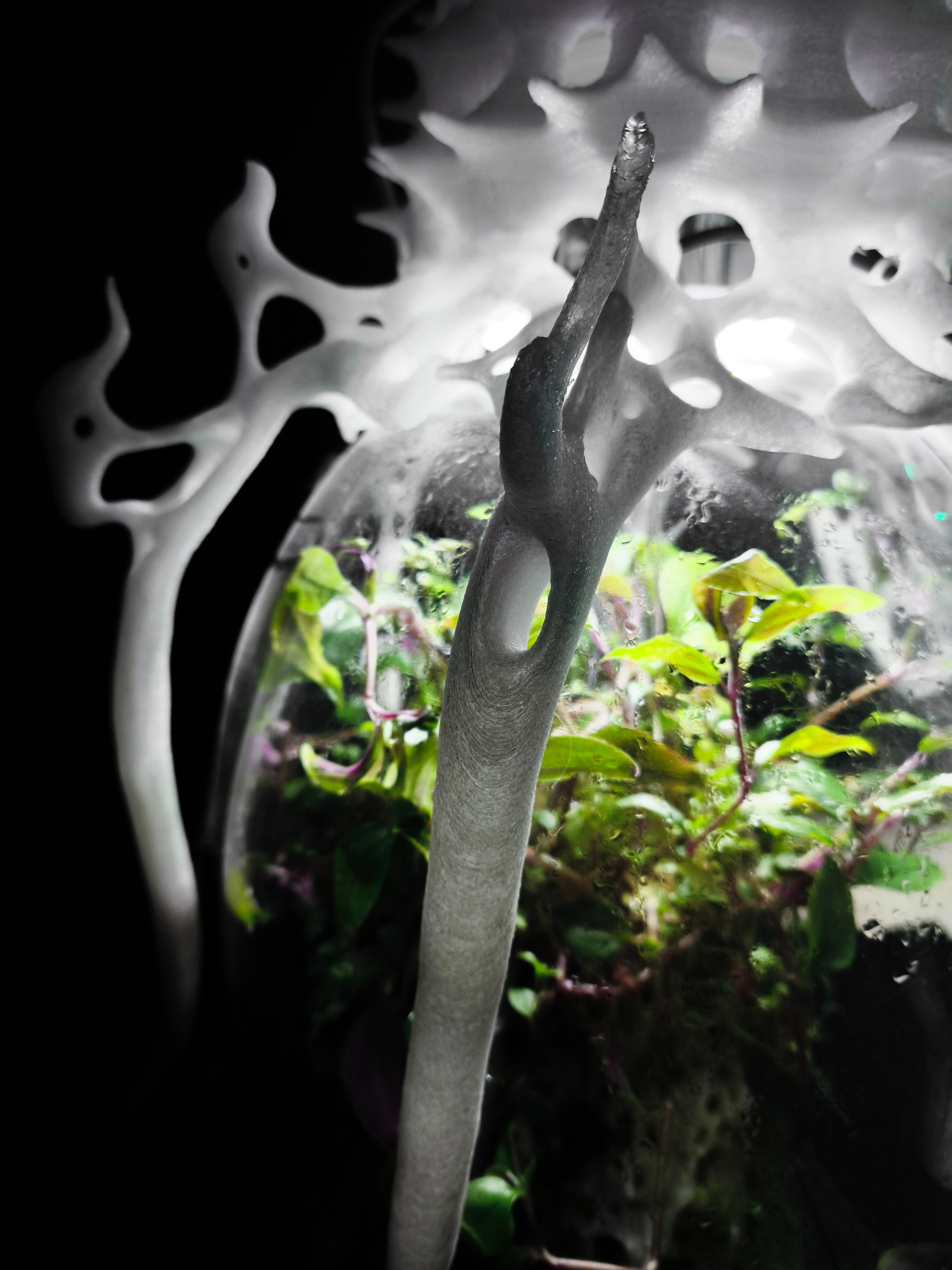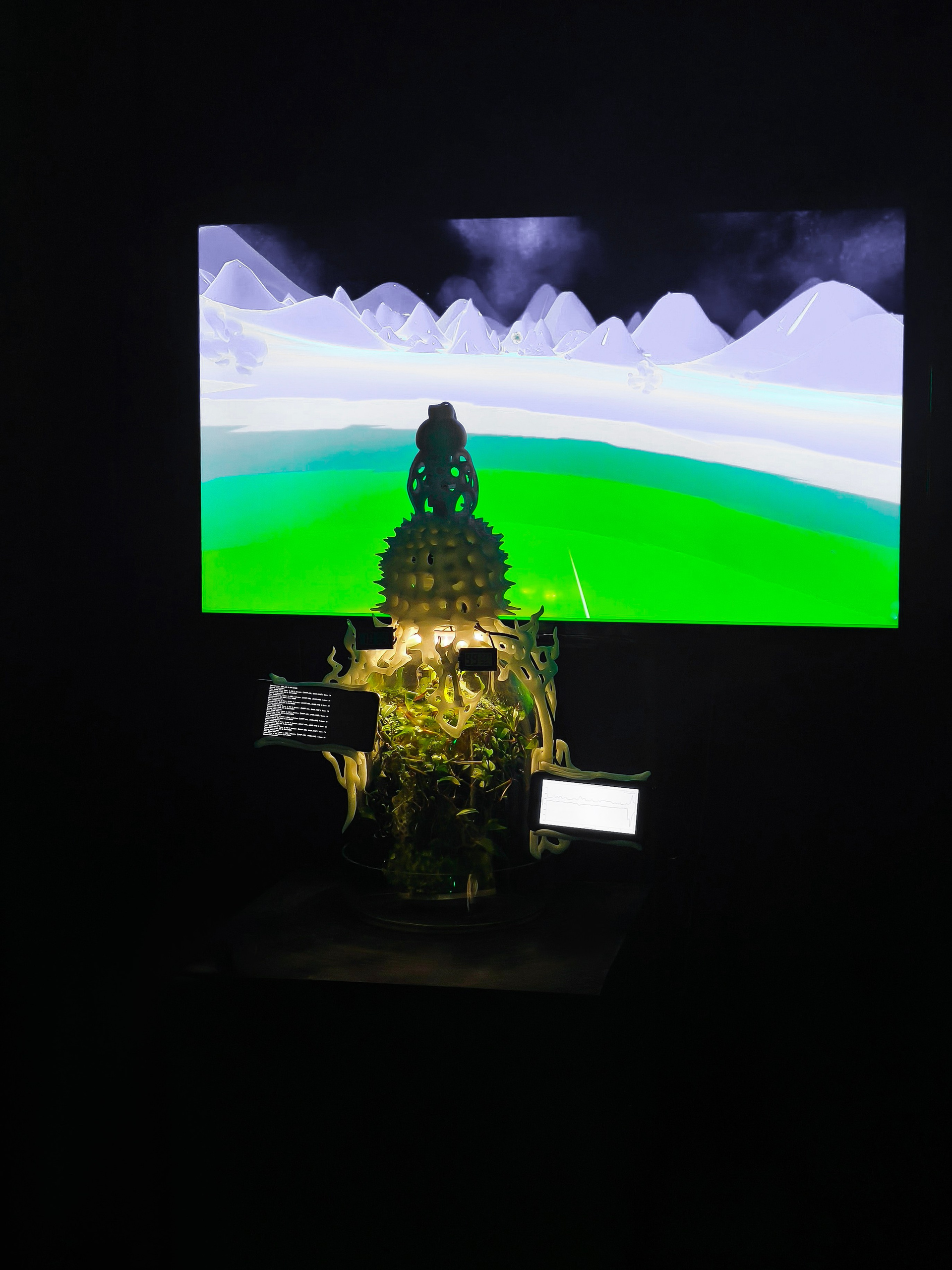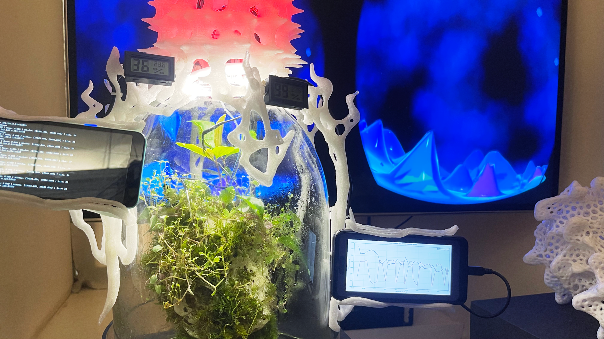 Обращаясь к теме симбиоза и взаимопомощи как эволюционного механизма выживания, проект исследует технологически опосредованное сотрудничество между людьми и растениями. Автор создает гибридную систему, где биоритмы мхов управляют поведением VR-аватара и влияют на физическую среду растения. Действия зрителя в VR — прикосновение или «кормление» аватара — отражаются на реальном организме: активируют освещение, создавая диалог между цифровым и биологическим.